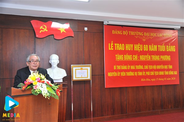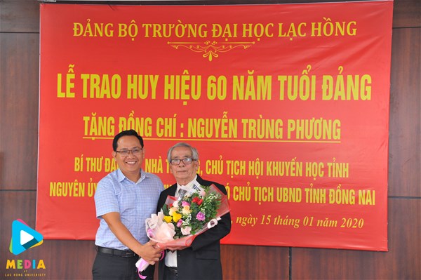 Ngày 15/01/2020, Đảng bộ Trường Đại học Lạc Hồng đã long trọng tổ chức Lễ trao Huy hiệu 60 năm tuổi Đảng cho Đ/c Nguyễn Trùng Phương – Bí thư Đảng ủy nhà trường, nguyên Ủy viên thường vụ Tỉnh ủy, Phó Chủ tịch Ủy ban nhân dân tỉnh Đồng Nai để ghi nhận công lao đóng góp trong suốt quá trình phấn đấu, rèn luyện của đồng chí.