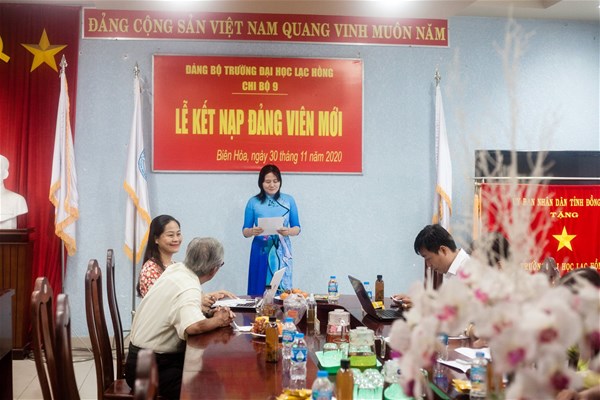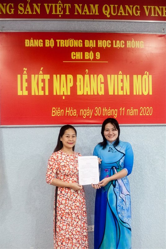 Được sự thống nhất của Ban thường vụ Đảng ủy khối, Đảng ủy trường đại học Lạc Hồng, Sáng ngày 30/11/2020 tại văn phòng họp cơ sở 1, Chi bộ 9 đã tiến hành tổ chức lễ kết nạp Đảng viên cho quần chúng xuất sắc Mai Hương Trà vào Đảng Cộng sản Việt Nam; Đến dự buổi lễ kết nạp có Đ/c Nguyễn Trùng Phương – Bí thư Đảng ủy, Đ/c Lê Thị Thu Hương -  Bí thư Chi bộ 9, cùng toàn thể Đảng viên trong Chi bộ.