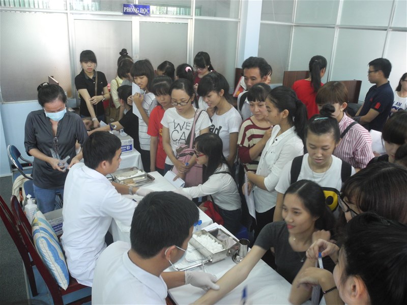 Các Tân sinh viên khóa 2015 đang lấy máu xét nghiệm