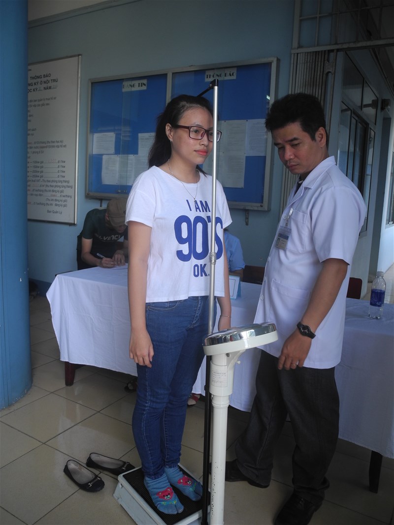 Sinh viên đo chiều cao, cân nặng
