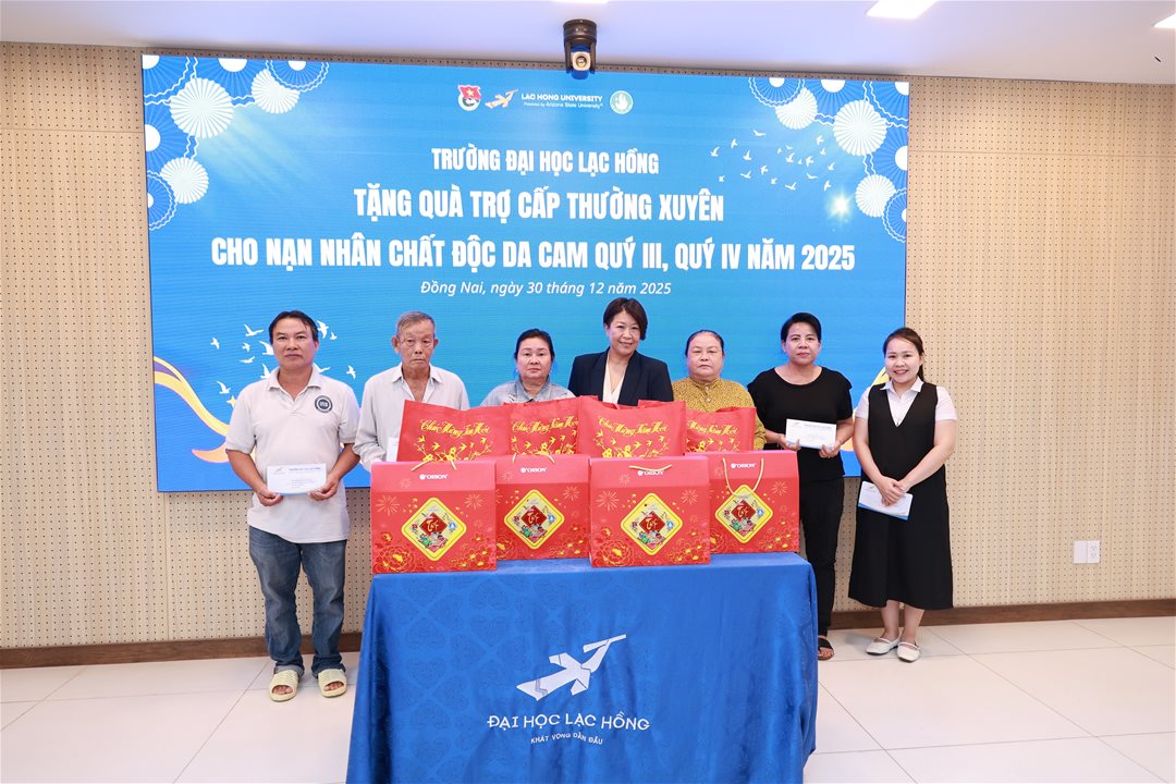 Ngày 30/12/2025, Trường Đại học Lạc Hồng đã tổ chức chương trình trao quà trợ cấp thường xuyên cho các nạn nhân chất độc da cam trên địa bàn tỉnh Đồng Nai, thuộc đợt hỗ trợ Quý III và Quý IV năm 2025.