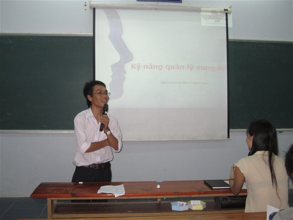 Hình 03. Anh Tuấn đang trình bày vè kỹ năng quản lý xung đột.