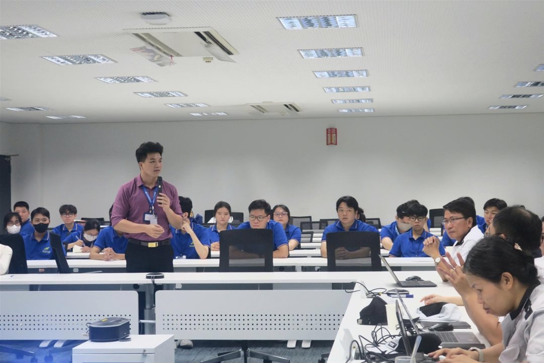 Sinh viên đã có cơ hội tiếp cận môi trường làm việc quy mô lớn, chuyên nghiệp và hiện đại của YKK – doanh nghiệp nổi tiếng toàn cầu trong lĩnh vực sản xuất khóa kéo và phụ kiện may mặc. Chuyến đi mở đầu bằng việc giới thiệu tổng quan về lịch sử, văn hóa doanh nghiệp và hệ thống vận hành của công ty.
