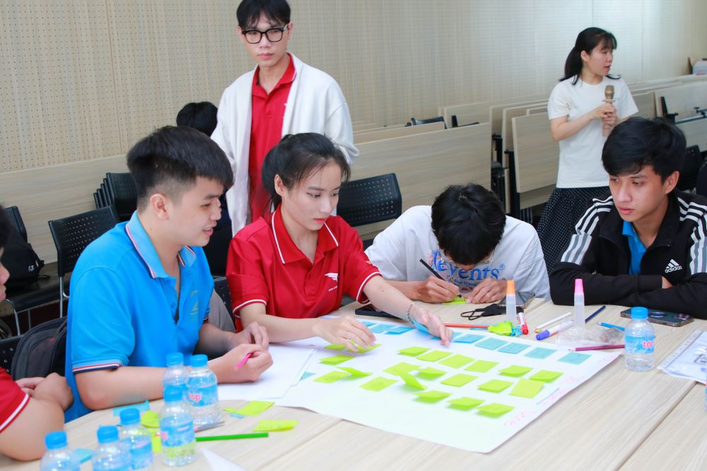 • Thực hành nhóm: Các bạn sinh viên được chia thành các nhóm nhỏ để thực hành theo kịch bản mô phỏng dự án thực tế, dưới sự hướng dẫn và hỗ trợ của các Scrum Coach từ Techbase VN.