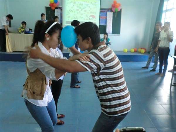Sinh viên tham gia trò chơi “Bong bóng tình yêu”