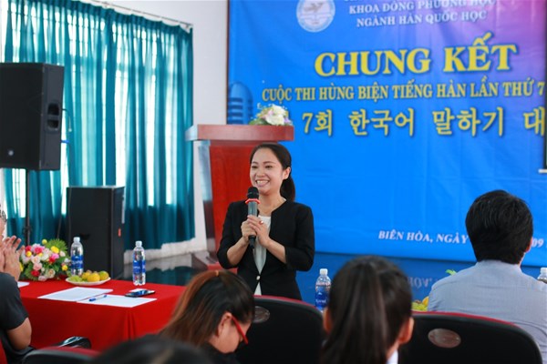 Khai mạc Cuộc thi, ThS. Đỗ Thị Thùy – Trưởng Bộ môn Hàn Quốc học phát biểu: Cuộc thi là một sân chơi dành cho các sinh viên Ngành Hàn Quốc học, qua Cuộc thi này mong rằng các sinh viên có thể thể hiện được khả năng sử dụng tiếng Hàn và tìm hiểu về văn hóa, đất nước, con người Hàn Quốc; qua đó góp phần tăng cường tình đoàn kết, mối quan hệ tốt đẹp giữa nhân dân hai nước Việt Nam và Hàn Quốc.