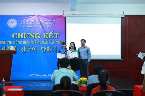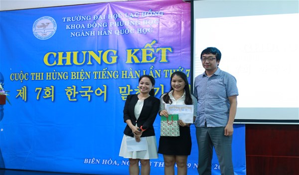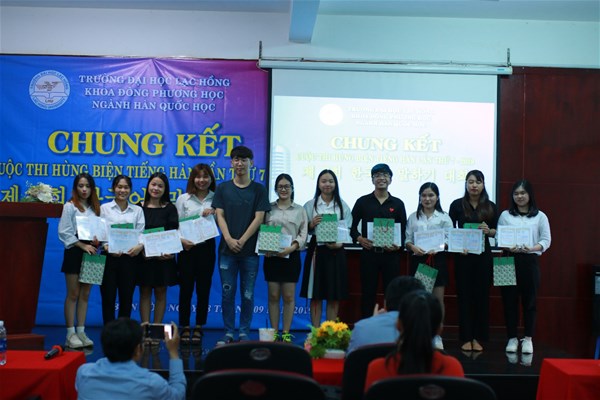 Sau cuộc thi, Trường Đại học Lạc Hồng sẽ chọn ra 10 sinh viên có bài viết và bài thuyết trình xuất sắc để tham gia Cuộc thi Nói tiếng Hàn online do KLAT- thuộc Cục Nghiên cứu Giáo dục Hàn Quốc tổ chức vào ngày 03/11/2019.