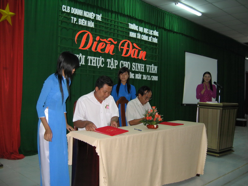 Qua buổi diễn đàn Câu Lạc Bộ Doanh Nghiệp Trẻ Tp Biên Hòa đã ký hợp đồng tiếp nhận sinh viên thực tập cho sinh viên khoa Tài Chính – Kế Toán.
