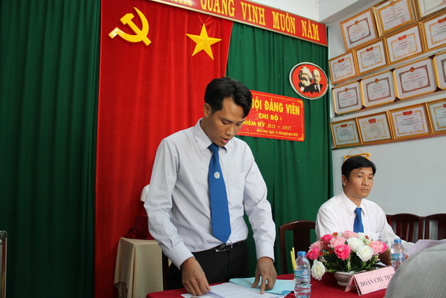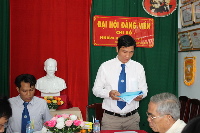 Hình 3: Đ/c Phạm Văn Toản trình bày báo cáo kiểm điểm của chi bộ trong nhiệm kỳ cũ