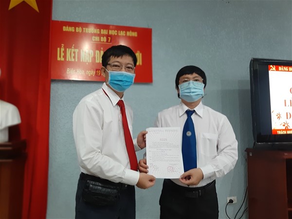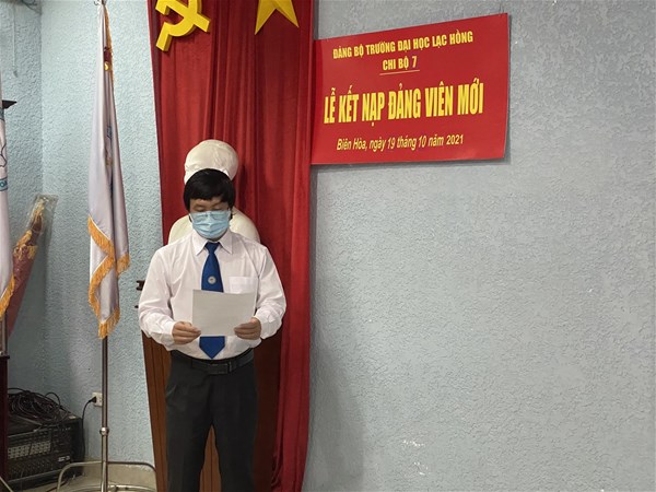 Được sự thống nhất của Ban thường vụ Đảng ủy khối, Đảng ủy trường đại học Lạc Hồng, sáng ngày 19 tháng 10 năm 2021 tại phòng họp cơ sở 1, Chi bộ 7 đã tiến hành tổ chức lễ kết nạp Đảng viên cho quần chúng Phan Thành Tâm vào Đảng Cộng sản Việt Nam; Đến dự buổi lễ kết nạp có Đ/c Nguyễn Trùng Phương – Bí thư Đảng ủy trường, cùng toàn thể Đảng viên trong Chi bộ.