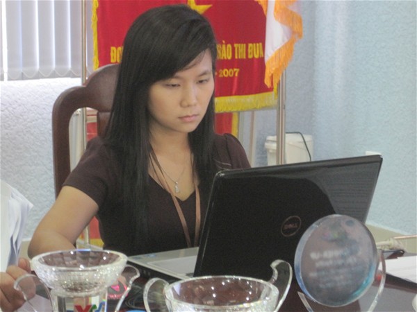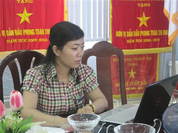 Cô Nguyễn Thị Huyền Trang- nhóm chuyên trách 3-4, đang góp ý tiêu chuẩn 2 và tiêu chuẩn 10...