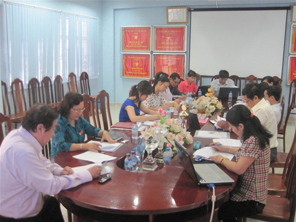 Tham dự buổi họp có thầy Trần Minh Mẫn- Trưởng nhóm Tiêu chuẩn 2, cô Trần Thị Mỹ Hương- Trưởng nhóm Tiêu chuẩn 10, thầy Đỗ Hữu Tài- Hiệu trưởng Nhà trường, thầy Nguyễn Văn Tân- Trưởng phòng Kiểm định chất lượng, cô Lê Thu Thủy- Phó trưởng phòng Kiểm định chất lượng, cô Trịnh Nguyễn Thư Giang, cô Nguyễn Ngọc Phương Thanh- phòng Kiểm định chất lượng, cùng các thầy cô thuộc các nhóm chuyên trách.