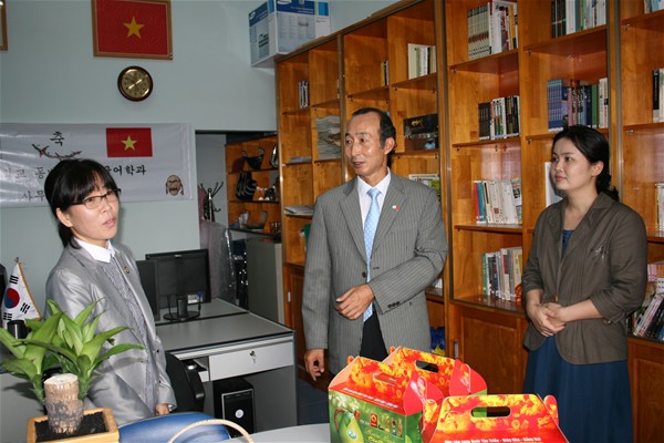 Sau buổi lễ, ông Lee Uk Heon cùng các thầy cô ngành Hàn Quốc học và các bạn sinh viên đã tham quan phòng tư liệu Hàn Quốc. Hy vọng, sự thành lập phòng tư liệu Hàn Quốc sẽ mang lại cho các bạn sinh viên cơ hội được học tập, tìm hiểu và nghiên cứu tốt.