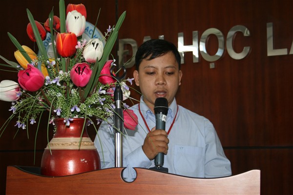 Thầy Đặng Đại Hùng - Phòng Công tác Sinh viên đại diện cho 37 công đoàn viên mới đọc đơn xin gia nhập công đoàn