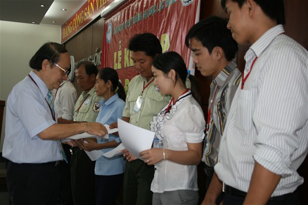 Ths Diệp Cẩm Thu trao quyết định kết nạp cho các công đoàn viên