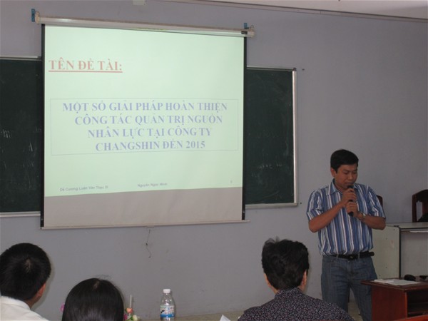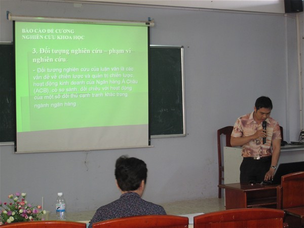 Sau khi nhận quyết định giao đề tài luận văn thạc sĩ, 24  anh chị học viên lớp cao học quản trị kinh doanh khóa 1 đã có thời gian làm việc, trao đổi với giáo viên hướng dẫn về đề tài. Và vào ngày 16/01/2011vừa qua, các học viên đã  báo cáo đề cương đề tài của mình trước hội đồng khoa học của Trường.