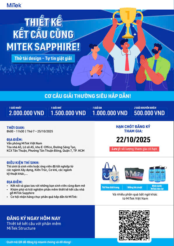 Sáng ngày 25/10/2025, tại Văn phòng MiTek Việt Nam (TP. Hồ Chí Minh), cuộc thi Thiết kế kết cấu cùng MITEK SAPPHIRE  dành cho sinh viên ngành Kỹ thuật Xây dựng đã diễn ra vô cùng sôi nổi với sự góp mặt của nhiều trường đại học.