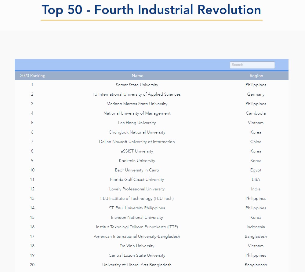 According to the WURI 2023, LHU ranks 5th in top 50 universities supporting Fourth Industrial Revolution