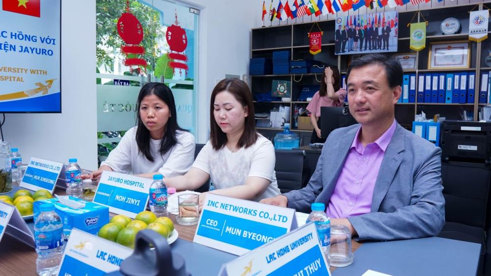 The delegation was represented by Mr. Mun Byeongki - CEO of INC Networks Co.,Ltd; Ms. Noh Jinyi - Chairwoman of the Board of Directors of Jayuro Hospital and their associates. From the LHU side, there were Dr. Nguyen Huu Nghi - Dean of Faculty of Oriental Studies; Nguyen Thi Hoang Oanh, M.A and Hoang Tien Dung, M.A – Leaders of Office of International Affairs; Do Thi Thuy, M.A - Head of Department of Korean Studies.