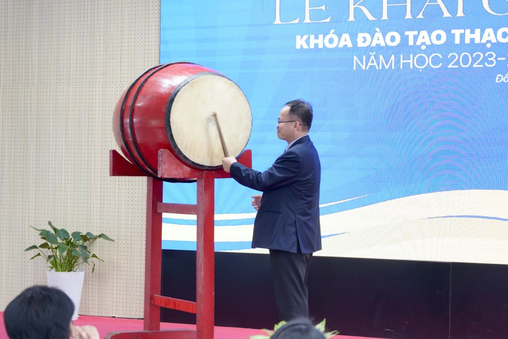 Associate Professor, Dr. Nguyen Thanh Lam - Vice Rector beating the drum to open the course