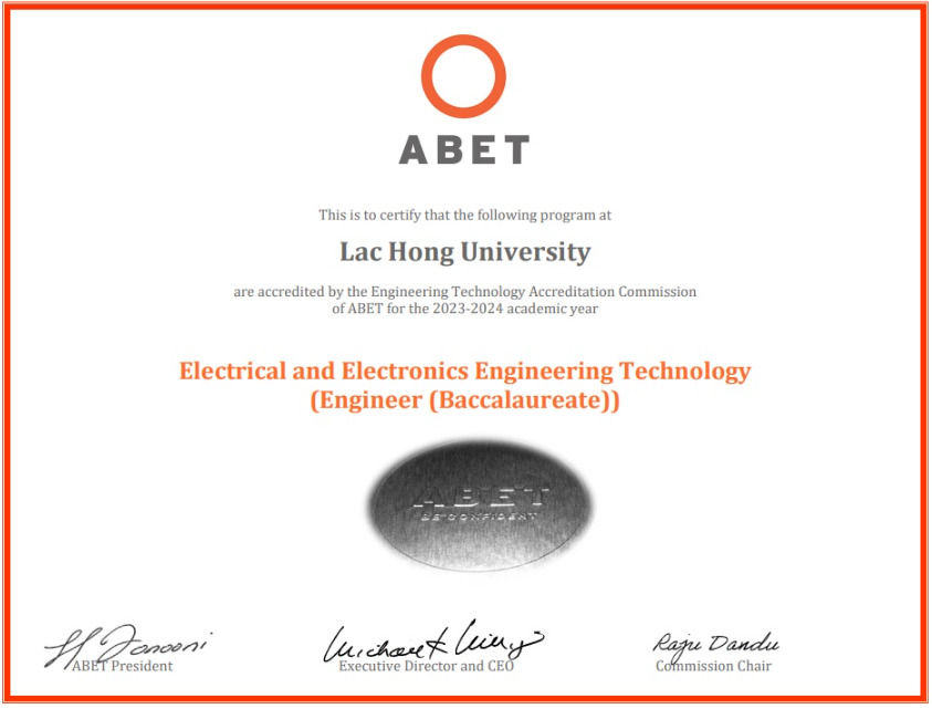 LHU. (2022, June 22). Đại học Lạc Hồng đạt chuẩn ABET hai chương trình Công nghệ kỹ thuật. Retrieved from https://lhu.edu.vn/316/44835/Dai-hoc-Lac-Hong-dat-chuan-ABET-hai-chuong-trinh-Cong-nghe-ky-thuat.html