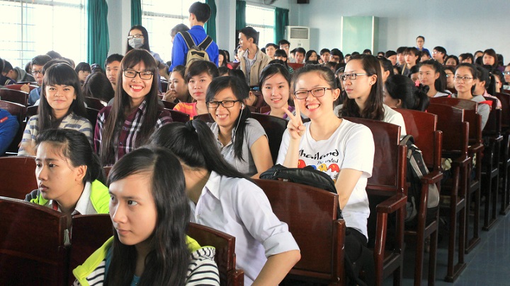 Các tân sinh viên dược khóa 2015 hân hoan trong buổi Gặp gỡ