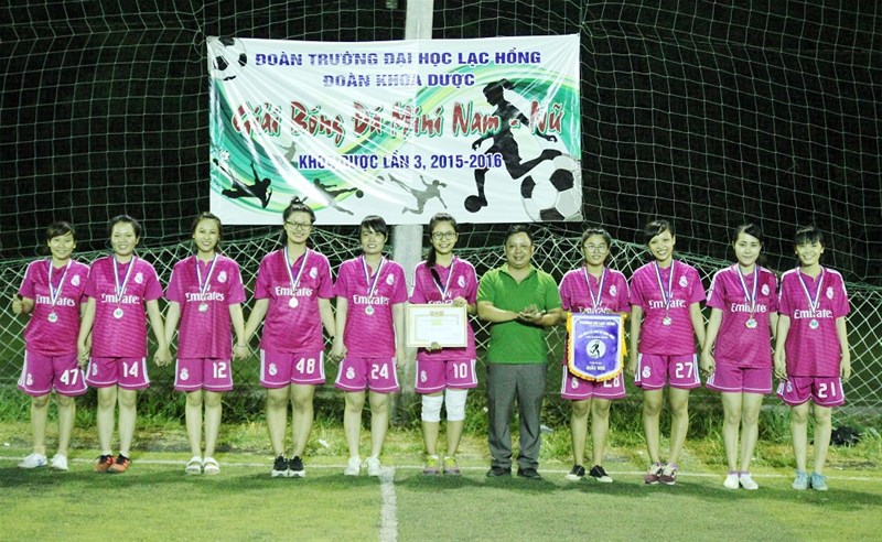 Chiều tối ngày 13/05/2016, tại sân bóng Thiên Long, P. Bửu Long đã diễn buổi Bế mạc Giải Bóng Đá Mini Nam – Nữ Sinh Viên Khoa Dược – ĐH Lạc Hồng năm học 2015 – 2016. Đội bóng đá nam lớp 15DS112 và đội bóng đá nữ lớp 13DS118 đã xuất sắc vô địch hai hạng mục này của giải đấu.