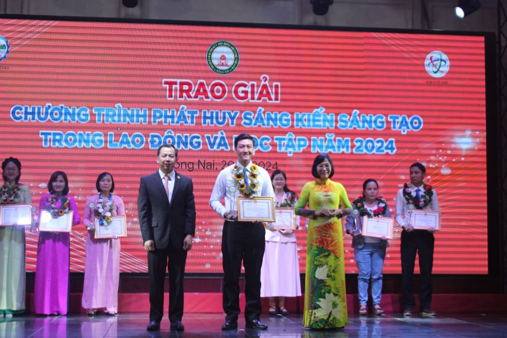 Nhân dịp này, Ban tổ chức đã trao giải cho các tác giả có tác phẩm đạt giải cao trong các phong trào, cuộc thi lĩnh vực khoa học và công nghệ năm 2024, gồm: Chương trình phát huy sáng kiến sáng tạo trong lao động và học tập tỉnh Đồng Nai (Chương trình 6); Giải thưởng Sản phẩm truyền thông khoa học và công nghệ; Hội thi nông dân giỏi ứng dụng tiến bộ khoa học kỹ thuật vào sản xuất nông nghiệp tỉnh; Cuộc thi tìm hiểu pháp luật về Sở hữu trí tuệ; Hội thi giáo viên giỏi ứng dụng công nghệ thông tin trong giảng dạy.