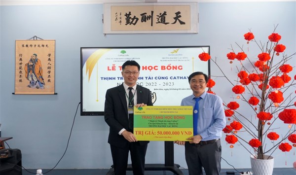 In order to create conditions for disadvantaged students to continue their studies, at 1:30 pm on February 24th, 2023, Cathay Life Insurance Company (Vietnam) awarded 10 million VND scholarships to 10 disadvantaged students, amounting to 50 million VND in total, at the Multimedia Classroom, Campus 3 of Lac Hong University.