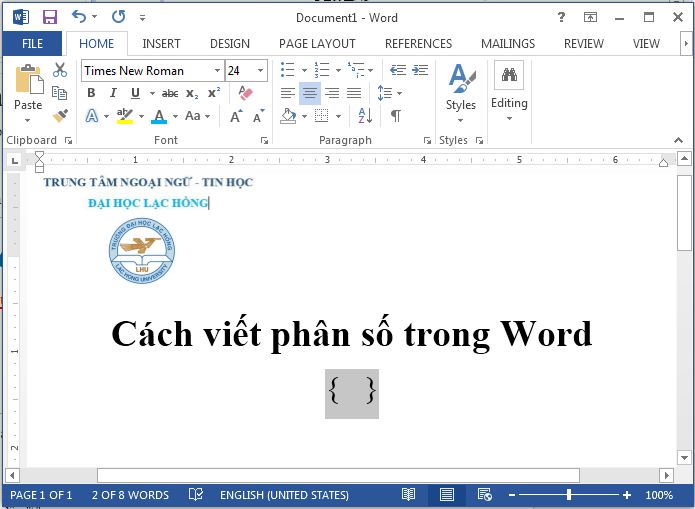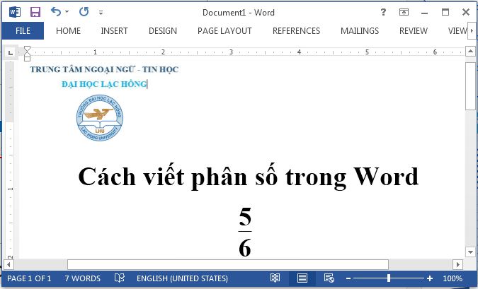 Cách đơn giản nhất để các bạn có thể viết phân số trong Word nhanh chóng và không cần sử dụng các add-ins khác, các bạn thực hiện như sau: