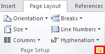 • Chọn tab Page Layout > nhóm Page Setup > chọn mũi tên dưới góc phải để mở hộp thoại Page Setup.