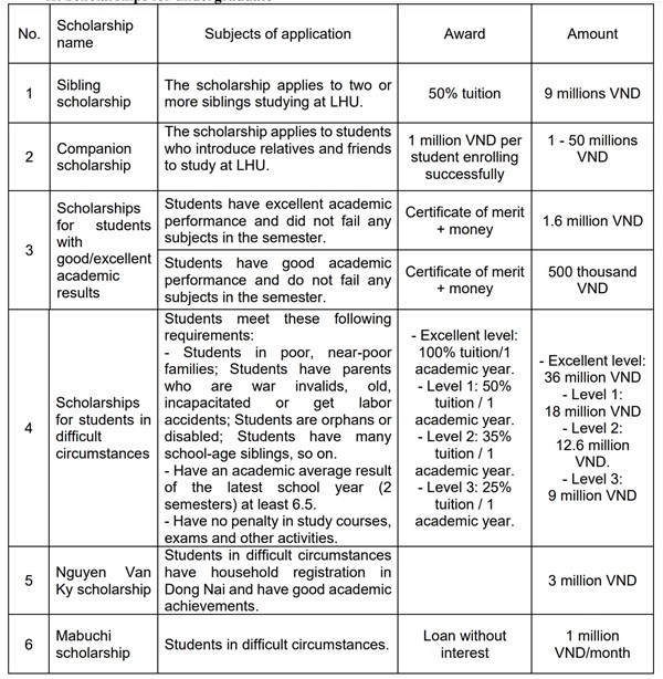 Every year, LHU and the Faculty of Pharmacy give students the opportunity to access many different types of scholarships, this is not only an important policy to attract students to enroll but also to express the school's spirit in supporting undergraduates. Here is a list of the scholarships in the school year 2020-2021 for undergraduate students:
