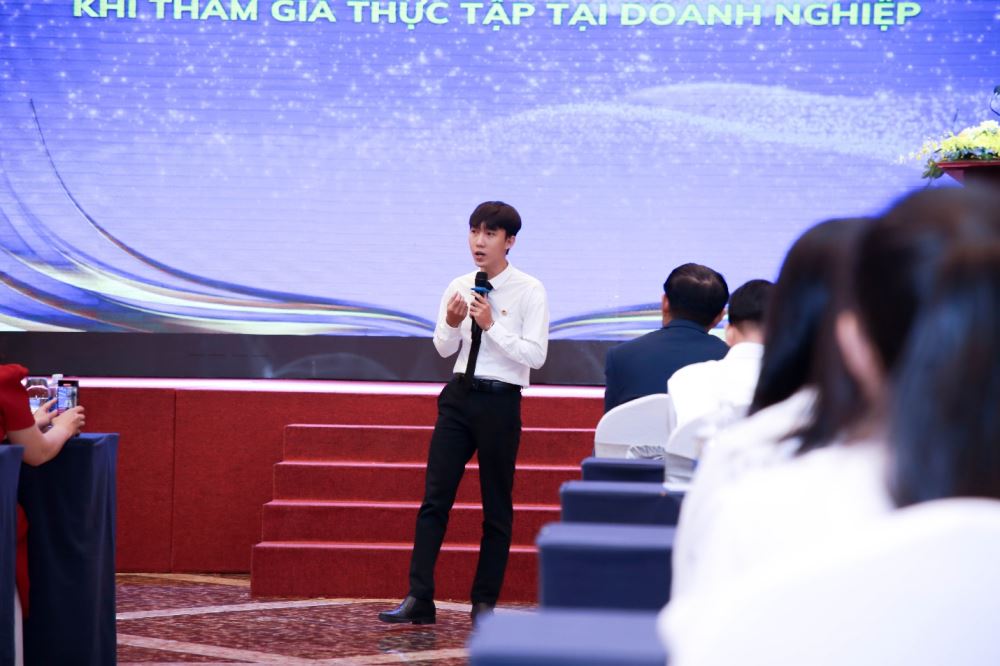 Speaker Mr. Than Thanh Van – Tour Operations Officer at Tri An Adventure Travel Company shared about knowledge needed for internship participation and the skills interns should prepare when entering the workforce beyond the enterprise.