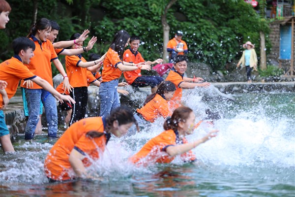 Students participating in experiential learning at Suoi Mo Tourist Area.