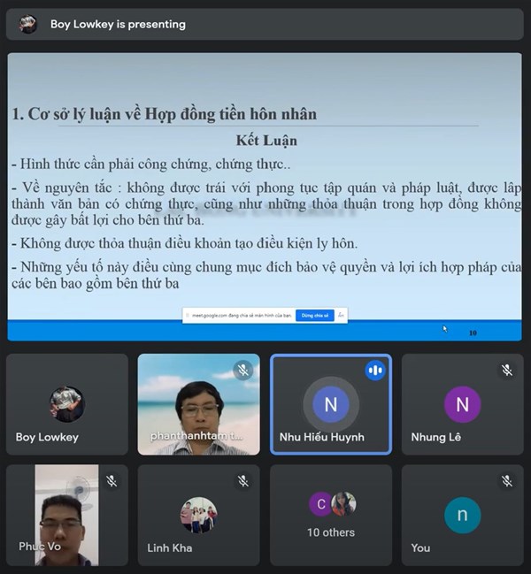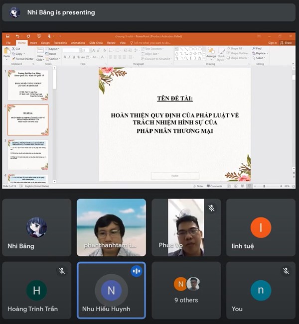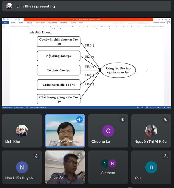 In order to create favorable conditions and support students in following the correct research direction and promoting the timely completion of their scientific research projects, at 6:30 p.m. on 23 September 2021, the Faculty of Business Administration - International Economics organized the First Progress Report session for student scientific research projects of the 2018 cohort. A total of 13 students presented 10 research topics via the online system, with the Scientific Council comprising: