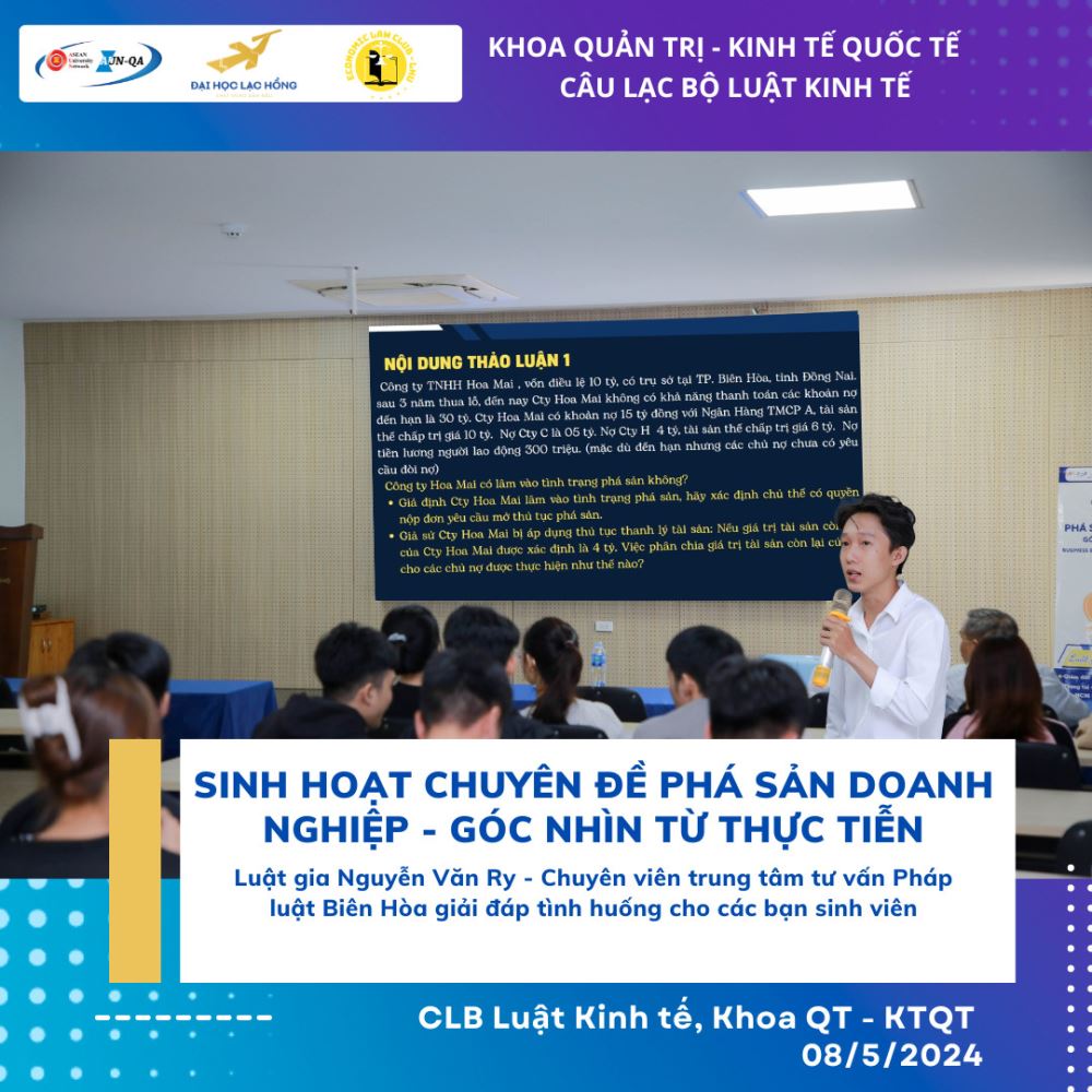 In order to equip students with essential knowledge and develop their skills, the program was organized to provide participants with an authentic and in-depth perspective on the risks faced by enterprises that go bankrupt in the business sector. The Economic Law Club has therefore organized a seminar entitled “Corporate Bankruptcy – A Practical Perspective” to help students gain a clearer understanding of the realities faced by enterprises.