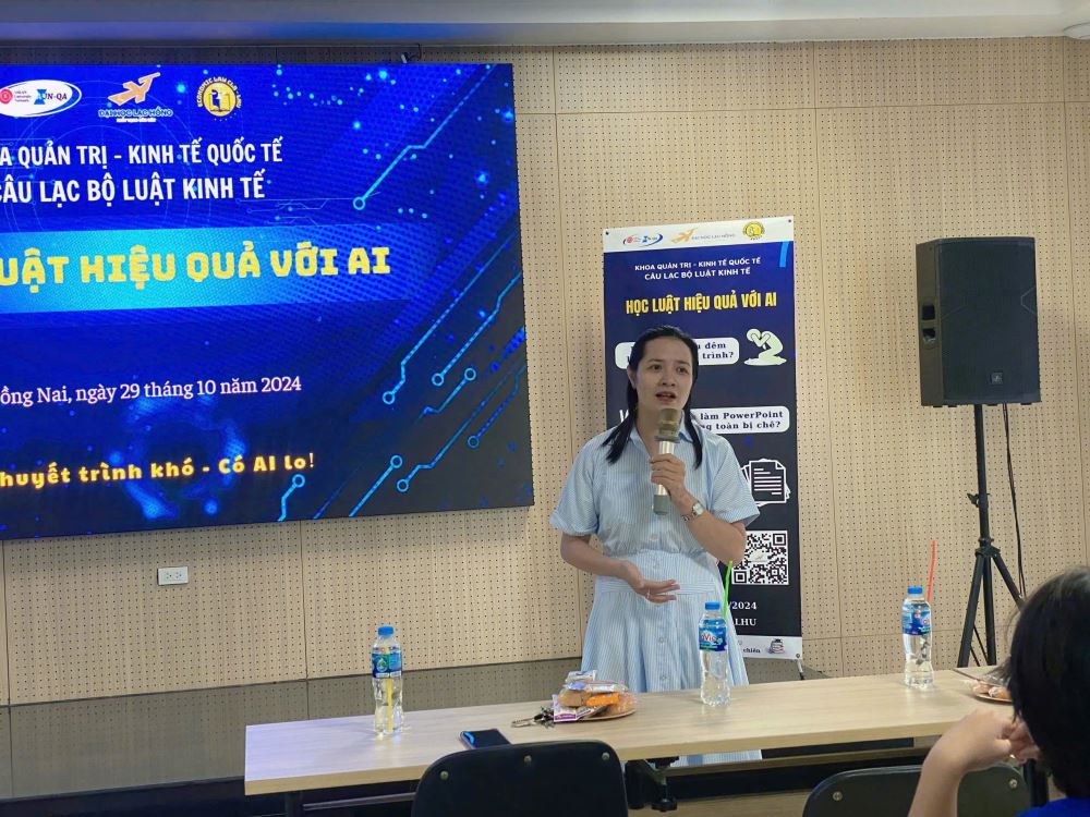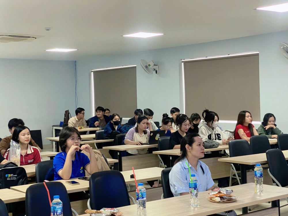• Lecturers and students listened to the sharing session by Nguyen Ngoc Phuoc – Former President of the Economic Law Club – about how he applied AI in his learning process.