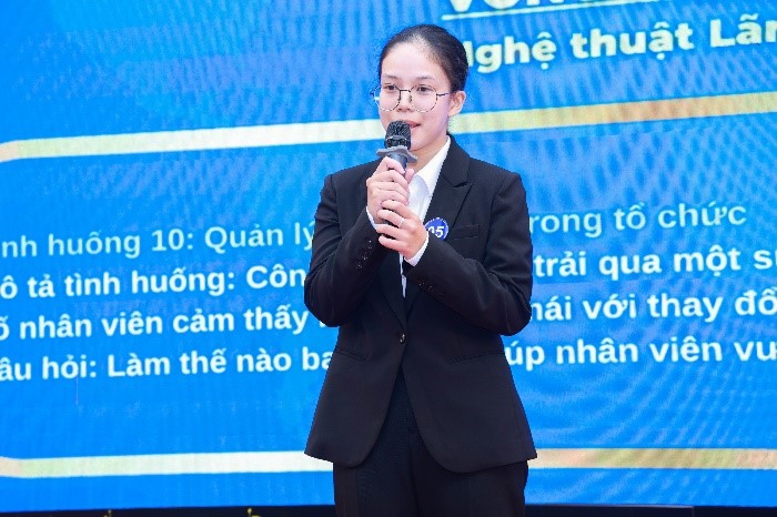 Behavioral response: The most outstanding contestants advanced to the decisive round, facing practical situational questions to demonstrate quick problem-solving abilities, logical thinking, and the confidence of a future leader.