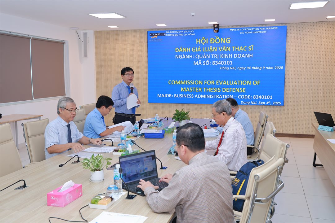 On September 4, 2025, at the meeting hall of Campus 1, Lac Hong University (LHU), thirteen master’s students in Business Administration successfully completed and defended their master’s theses. The defense session took place in a solemn and highly academic atmosphere, marking an important milestone in the students’ learning and research journey.